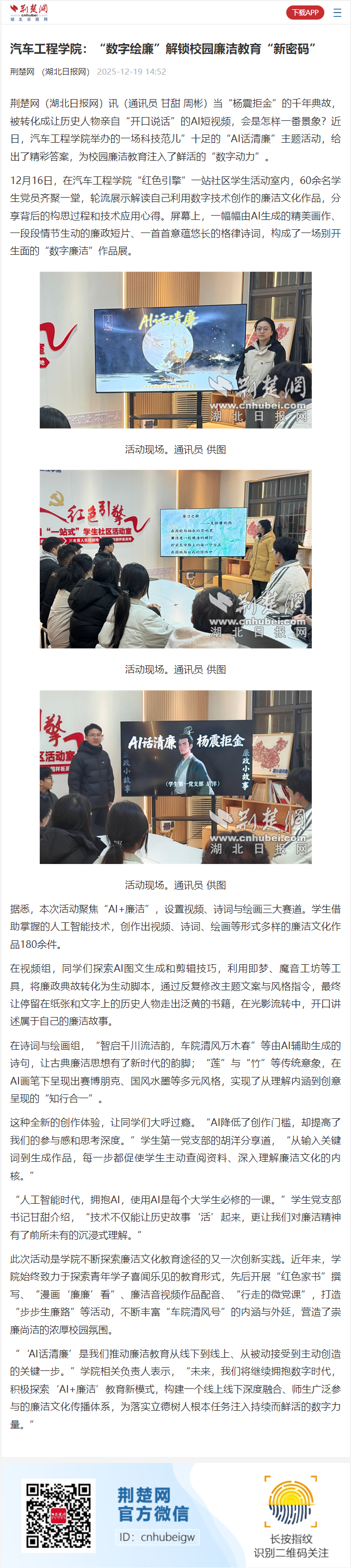 【荆楚网】776net必赢官网:“数字绘廉”解锁校园廉洁教育“新密码”