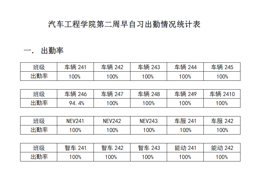 【学风考勤】776net必赢官网2024-2025学年第二学期第二周早自习出勤情况