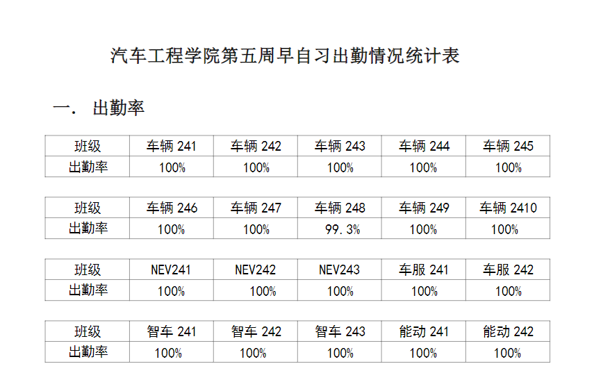 【学风考勤】776net必赢官网2024-2025学年第二学期第五周早自习出勤情况