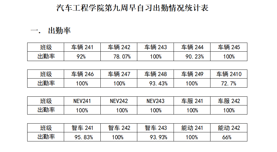 【学风考勤】776net必赢官网2024-2025学年第二学期第九周早自习出勤情况