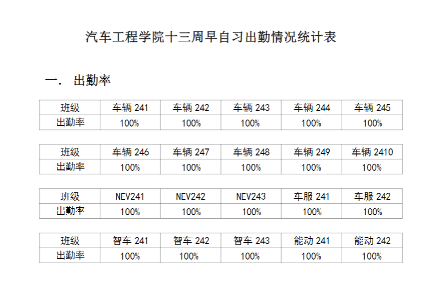 【学风考勤】776net必赢官网2024-2025学年第二学期第十三周早自习出勤情况