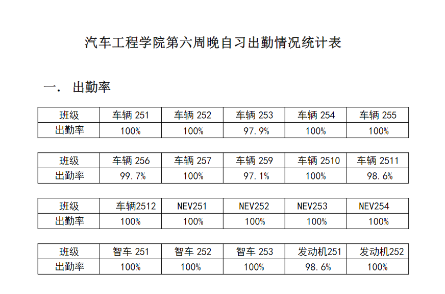 【学风考勤】776net必赢官网2025-2026学年第一学期第六周晚自习出勤情况