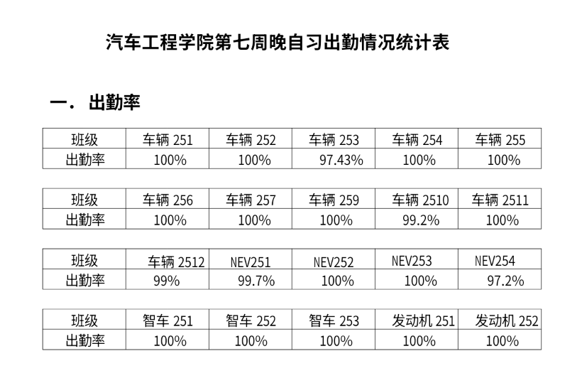 【学风考勤】776net必赢官网2025-2026学年第一学期第七周晚自习出勤情况